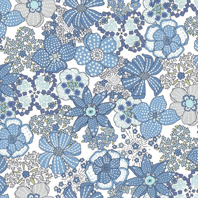 Printed Floral Lawn- QGKP9072H 001B - Blues
